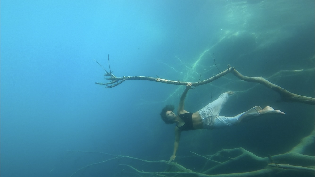 Kriss is a site-responsive dancer, choreographer, and director. They are working at the fulcrum of aquatic, terrestrial, and aerial dance, collaborating with the elements through suble listening and adaptive composition. They are constantly asking, how can I be in the most available state to recieve, metabolize, and respond to a constantly changing environment? Their research spirals in and out of the process of re-membering, cycles, and embodied resistance.