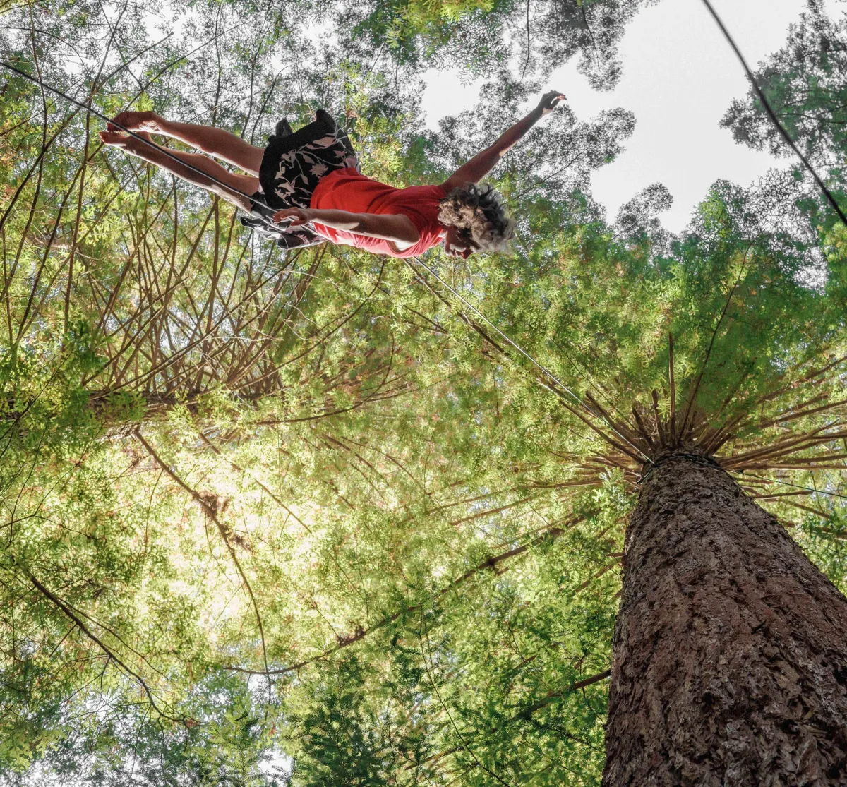 Kara will guide participants into a process of research, improvisation, and collaboration to explore movement suspended in space, reimagining dance beyond the horizontal plane and engaging the redwoods as both partner and stage.